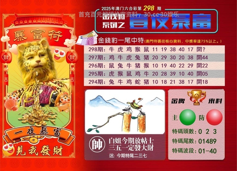 | 300期⑤肖 | 蛇龙虎鸡牛 | 开:虎40中 |